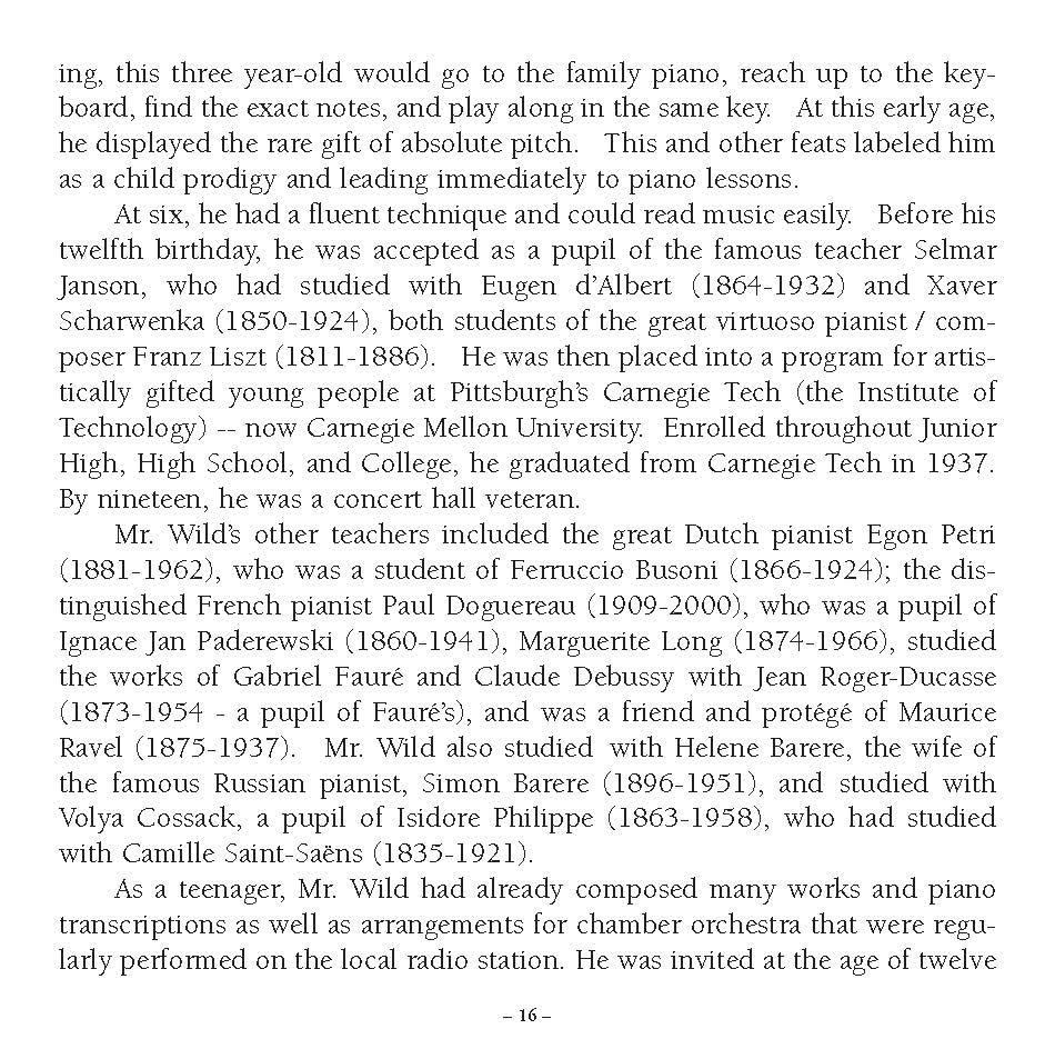 The concerto is a period piece – a bravura work in late 19th-century rhetoric...one can have fun tracing the various composers who play a part in this work. Greig is there, and Tchaikovsky, Liszt and Schumann, and Chopin, Anton Rubinstein, and Saint- Saëns. Toward the end of the last movement, there is a theme that prefigures Rachmaninoff and the “Warsaw” Concerto, which is something of a feat considering that Scharwenka’s was composed in 1877...It is a wing-ding of a romp, one in which the pianist starts with a great splurge and scarcely removes his hands from the keys for the next half hour. It has pretty melodies, and it has a fiendishly difficult solo part...Period composers do reflect their age, and Scharwenka did, completely. It was a comfortable age, an age when the virtuoso was king, an age where sentiment ruled...And so the Scharwenka B flat minor Concerto was a charming, lightweight, and exhibitionistic work....the way Mr. Wild played it was actually startling. It was sheer control all the way through with a feathery touch, minimum pedal, and absolute clear articulation....Mr. Wild played it like a romantic hero of the keyboard, and he had a fine accompaniment from Mr. Leinsdorf.