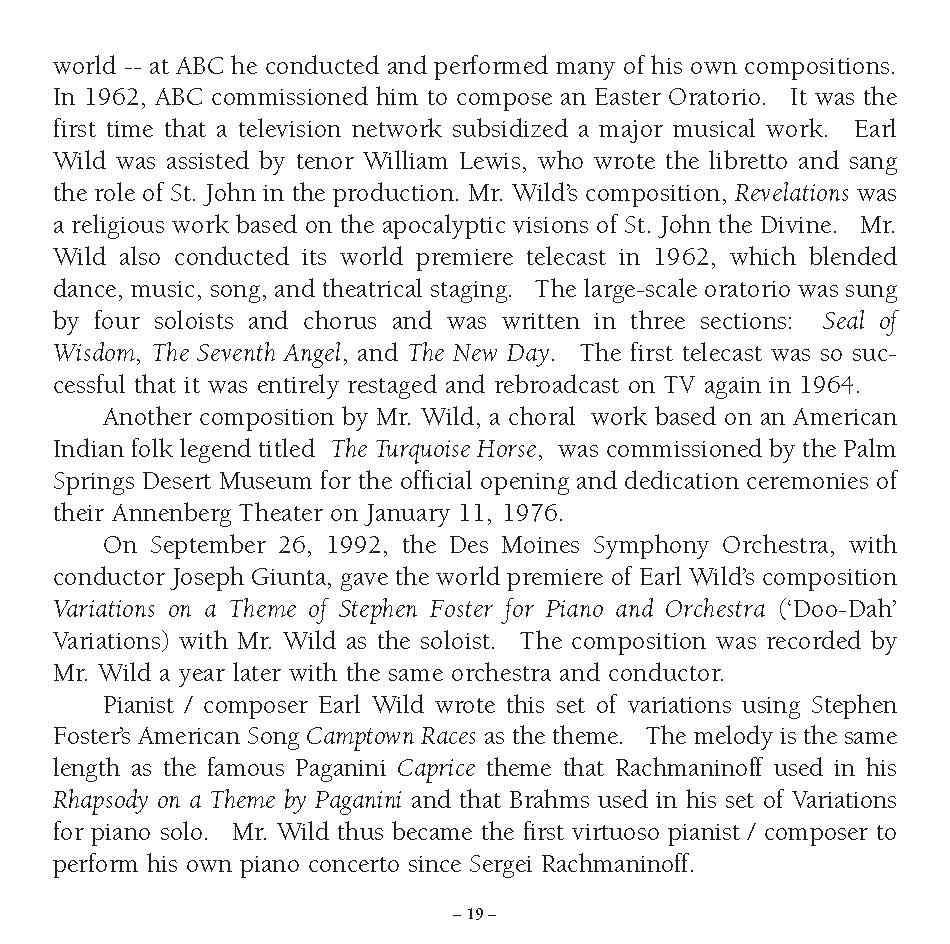 Thanks to beautifully balanced High-Resolution remasterings of recordings originally made in 1969/70, pianist Earl Wild is heard once again in absolutely stunning performances of showpieces by two Polish composers who have been all but forgotten, Ignacy Jan Paderewski (1860-1941) and Franz Xaver Scharwenka (1850-1924). Both in terms of the music and its realization by Wild and the forces heard with him, this is the excitement of the sort you aren't likely to hear often in today's concert halls.